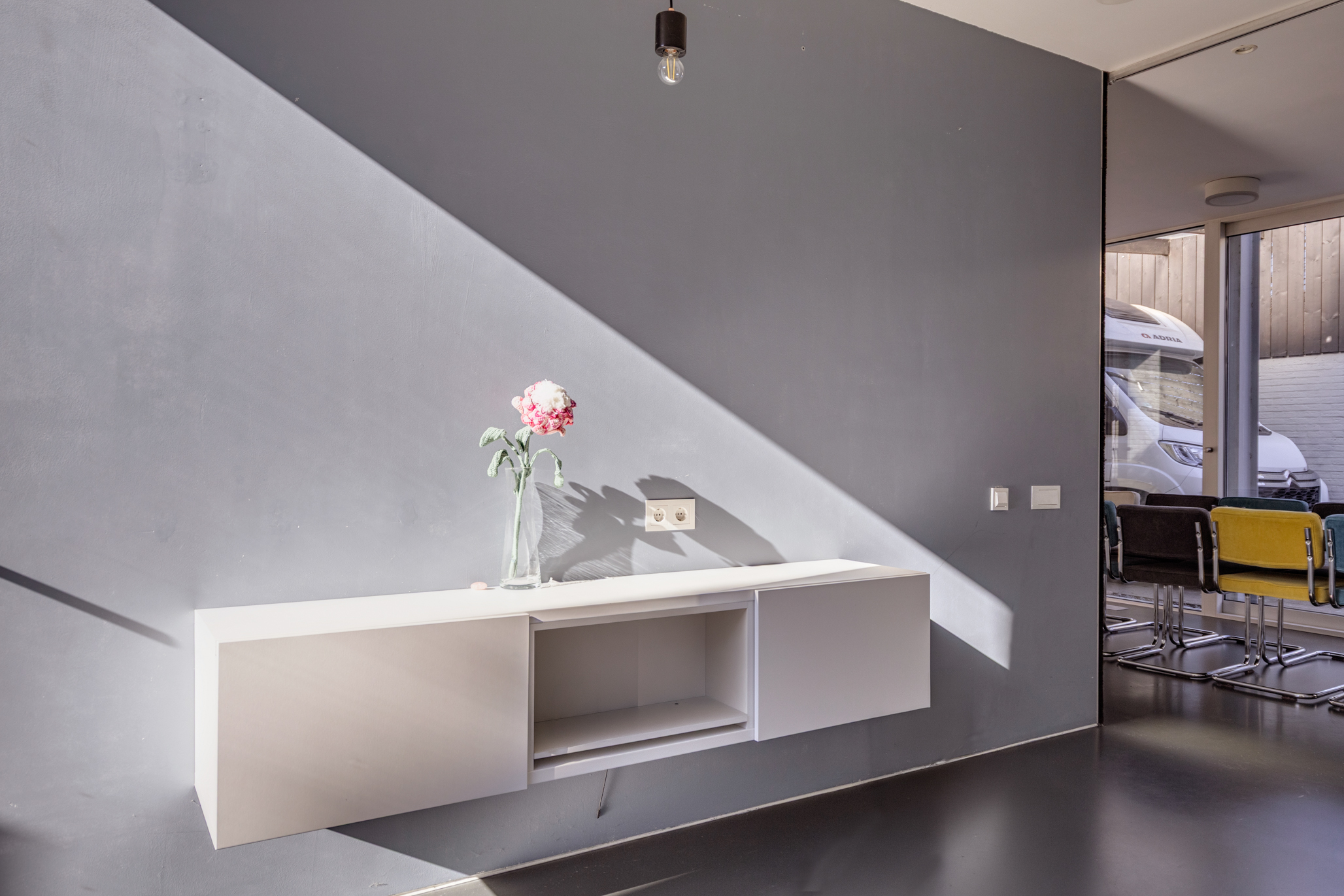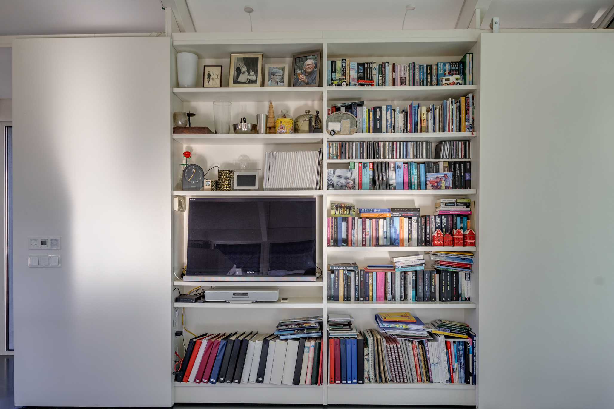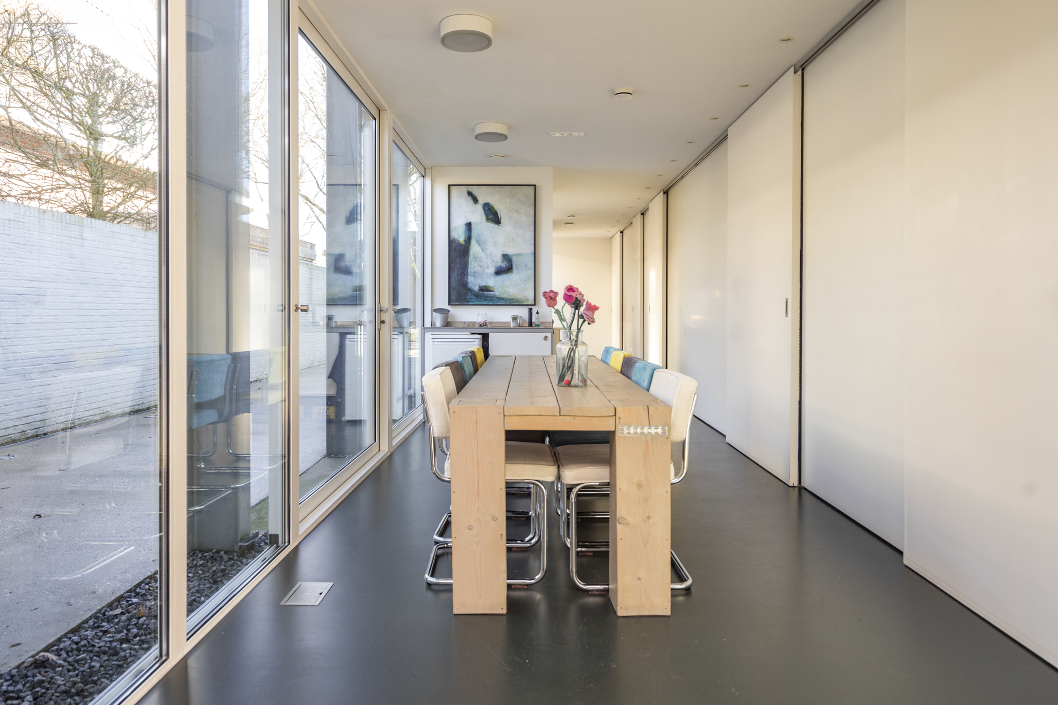 Alle ruimtes zijn betreedbaar door geïntegreerde schuifdeuren.
