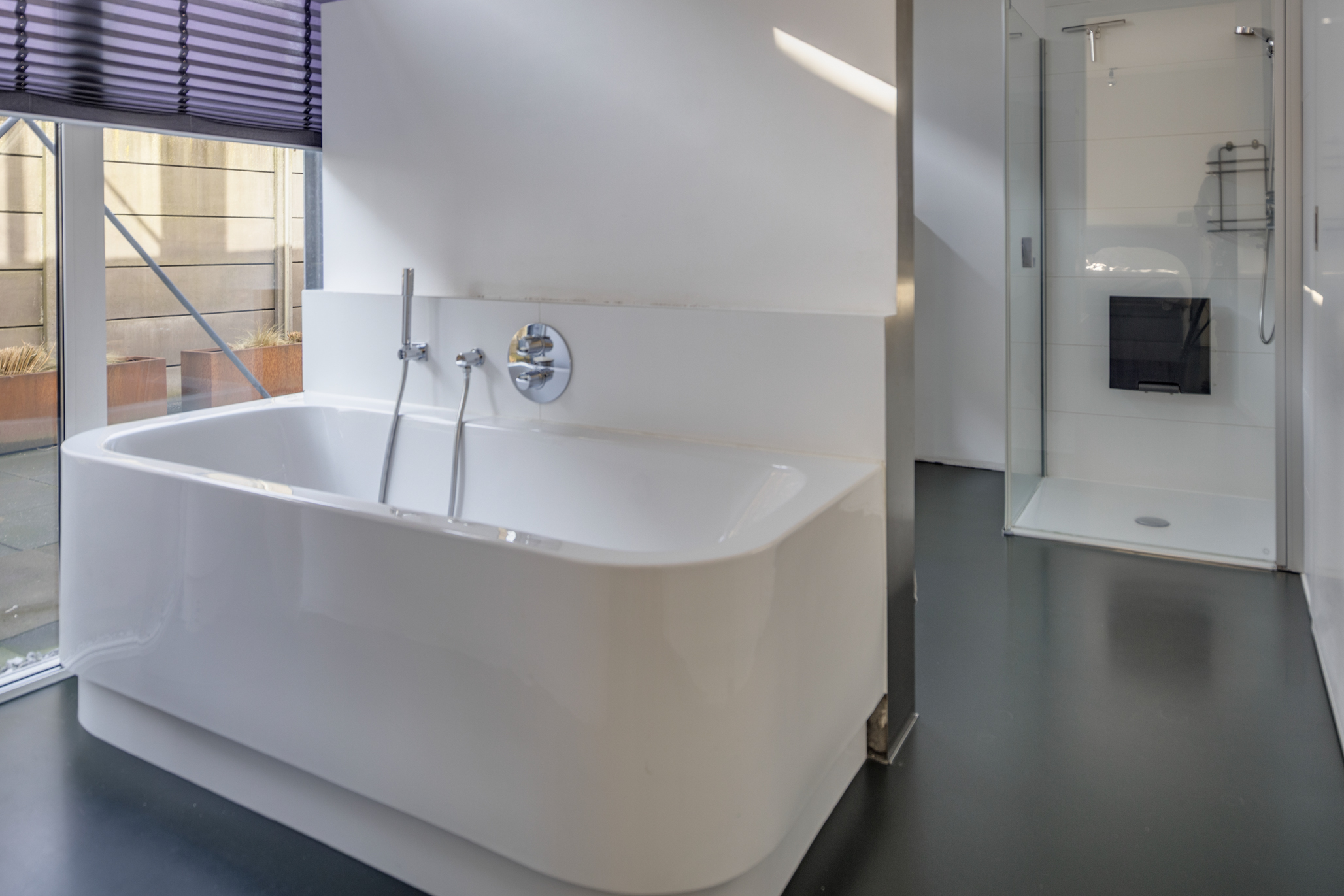 Het royale dakterras grenst direct aan de woonverdieping en biedt optimale privacy. Een ideale plek om in alle rust te ontspannen of gasten te ontvangen.